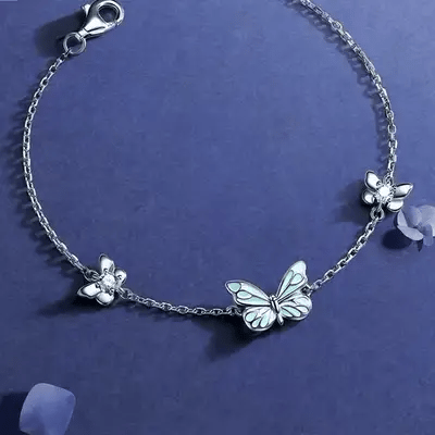 Engedd, hogy stílusod nappal és éjjel is ragyogjon ezzel a fénylő pillangós karkötővel. A sötétben lágyan világító, kék pillangómedál mesés hangulatot kölcsönöz bármely szettnek. Pehelykönnyű, elegáns és játékosan különleges — tökéletes választás álmodozóknak, romantikusoknak és azoknak, akik szeretik az igazán egyedi részleteket.